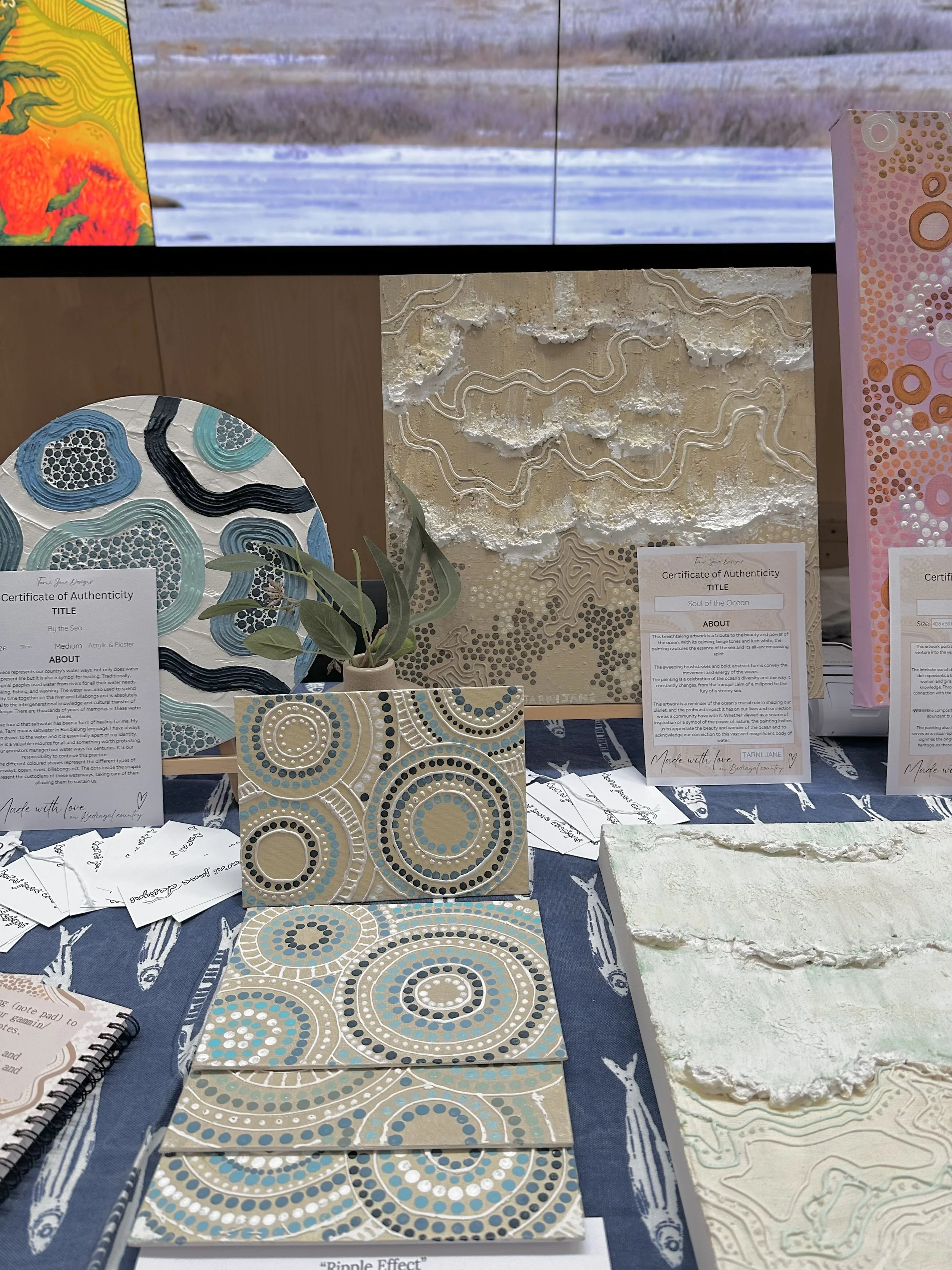 Marara Designs offers a beautiful range of Aboriginal-inspired artworks and handmade creations, including original paintings, prints, home decor, apparel, and custom-designed pieces. Each work shares stories of culture, connection, and community, celebrating identity and belonging through art that is deeply connected to Country and culture.